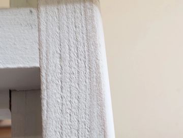 This process creates a textured, weathered look, enhancing the natural wood grain, adding depth and character for a rustic, organic appeal. The result is a durable and stylish window treatment that combines timeless elegance with a unique, tactile finish.